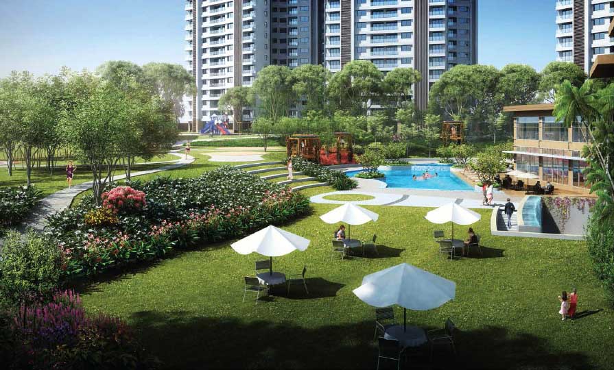 The project is set to be a landmark development. The aesthetics and architecture of the 30 storey high rise towers by International architects Benoy and RSP are designed to satisfy the most discerning customers. A beautifully landscaped green-zone designed by Site Concepts, Singapore, covers a vast majority of the nearly 17-acre property, offering well detailed and calming experiences.